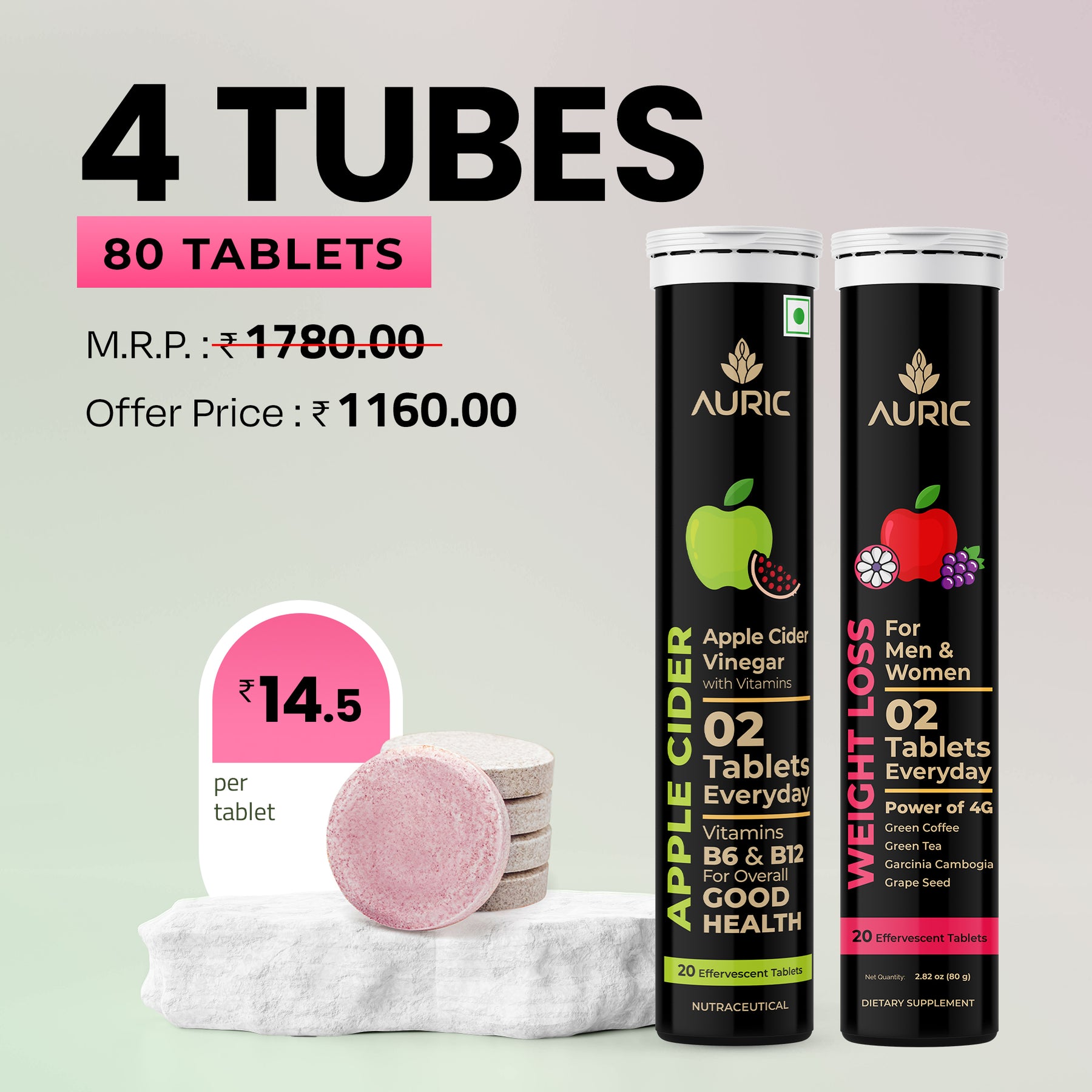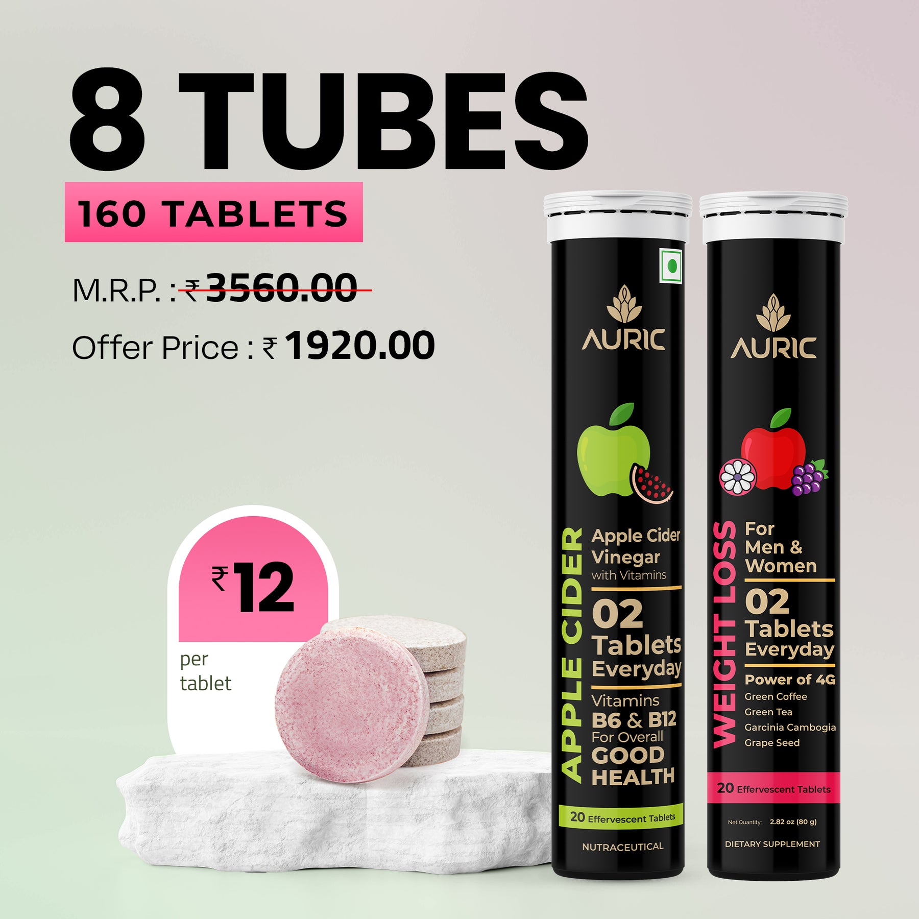 Meet your wellness duo — Auric Weight loss + Auric Apple Cider Vinegar (ACV) Effervescent Tablets. Designed to be easy to use, tasty, and completely plant-based, this combo brings together two carefully crafted formulas in one convenient routine.